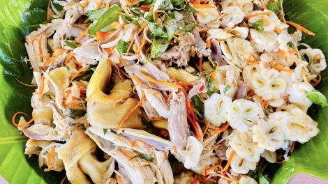 (VOVWORLD) - Chicken salad with mangosteen is a unique combination of tender chicken and the sweet, tangy mangosteen and has become a favorite for foodies looking for fresh, vibrant flavors that push the boundaries of Vietnamese culinary tradition. The dish isn’t just a feast for the stomach—it’s also a celebration of local ingredients, creativity, and the growing trend of integrating exotic fruits into savory dishes.