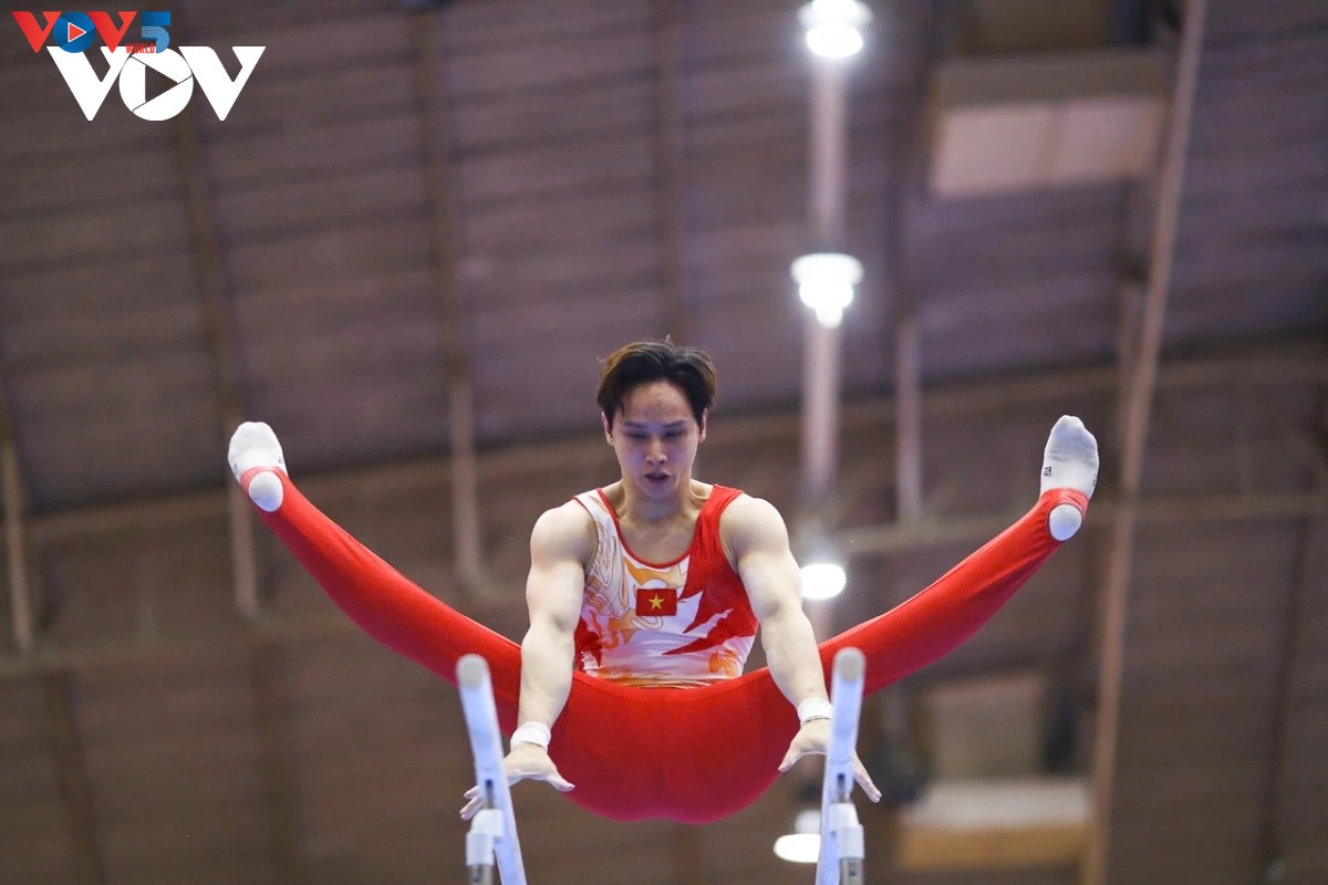 Dinh Phuong Thành remporte l’or aux barres parallèles avec un total de 12.900 points. Photo: VOV |