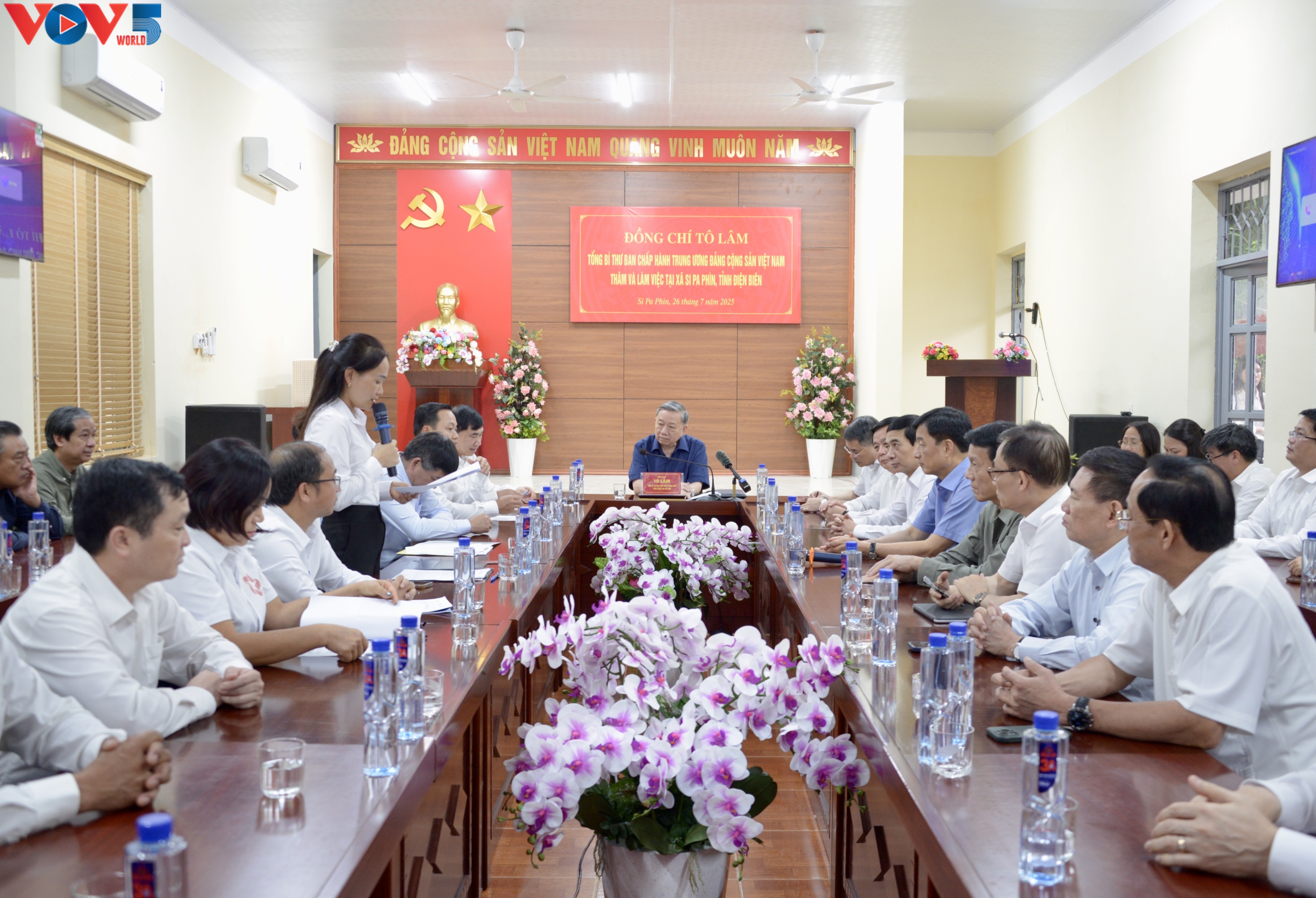 Le Secrétaire général travaille avec les autorités de la commune de Si Pa Phin. Photo: VOV |