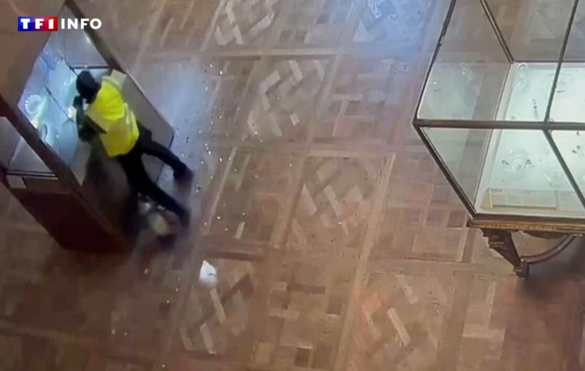 L’un des deux hommes s’attaque, muni d’une disqueuse, à la vitrine dans laquelle se trouvait le diadème de l’Impératrice Eugénie, qu’il parvient à saisir après avoir donné des coups de poing dans le verre. Il vient ensuite en aide au deuxième malfaiteur s’affairant sur la vitrine voisine, qui attrape plusieurs bijoux à toute vitesse. Le tout aura duré moins de quatre minutes, sous les yeux de quelques agents impuissants, l’un d’eux brandissant un poteau de guidage sans savoir que faire, selon les images de France Télévisions. Le butin a été estimé à 88 millions d’euros.