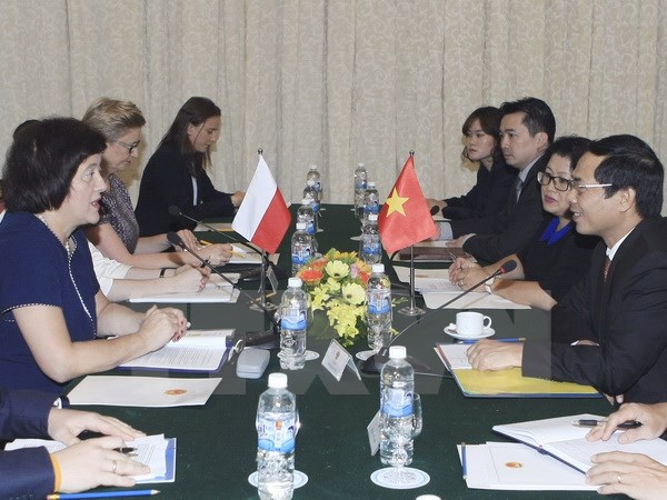 (VOVworld) - En visite au Vietnam, la vice-ministre polonaise des Affaires étrangères Joanna Wronecka s'est entretenue mercredi avec son homologue vietnamien Bui Thanh Son dans le cadre de la consultation politique annuelle. Les deux parties se sont félicitées de la qualité de la relation Vietnam-Pologne, admettant toutefois que beaucoup de potentiels restent à exploiter. Pour rendre plus efficaces les coopérations bilatérales, les deux ministères des Affaires étrangères serviront de passerelle entre les organes vietnamiens et polonais. Les deux parties ont convenu de poursuivre les échanges de délégations, de s’entraider lors des forums internationaux, notamment à l’ONU, l’UNESCO, l’ASEM et dans le cadre des coopérations entre l’ASEAN et l’UE. La vice-ministre polonaise a partagé la position du Vietnam de régler les litiges, dont ceux en mer Orientale par la voie pacifique, conformément au droit international, dont la Convention des Nations-Unies sur le droit de la mer en 1982.