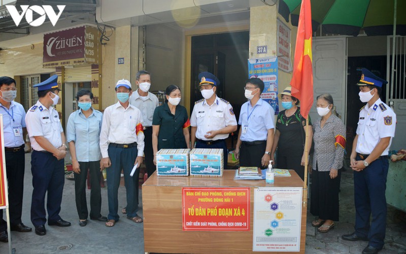 Lors de la remise des cadeaux au personnel des postes de prévention du Covid-19 dans la ville de Hai Phong |