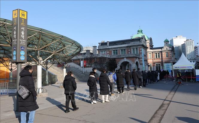 Faire la queue pour subir un test de dépistage à Séoul, en République de Corée, le 22 février 2022. Photo: Yonhap/TTXVN |