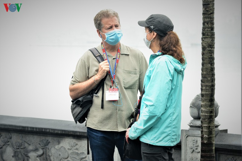 Autour du lac de l’Épée restitué et dans plusieurs anciens quartiers de la capitale comme à Hàng Ngang, Hàng Dào, Ta Hiên ou le marché Dông Xuân, presque tous les touristes portent des masques de protection. Certains d’entre-deux en portent même deux superposés. Camille, une touriste française, explique :