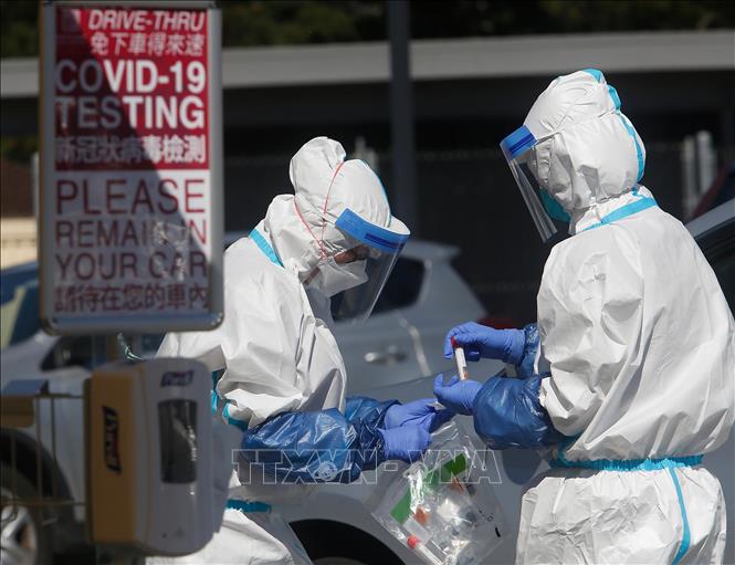 Des personnels médicaux préparent un test de dépistage du SARS-CoV-2 à Daly, en Californie (États-Unis). Photo: The Chronicle/TTXVN |