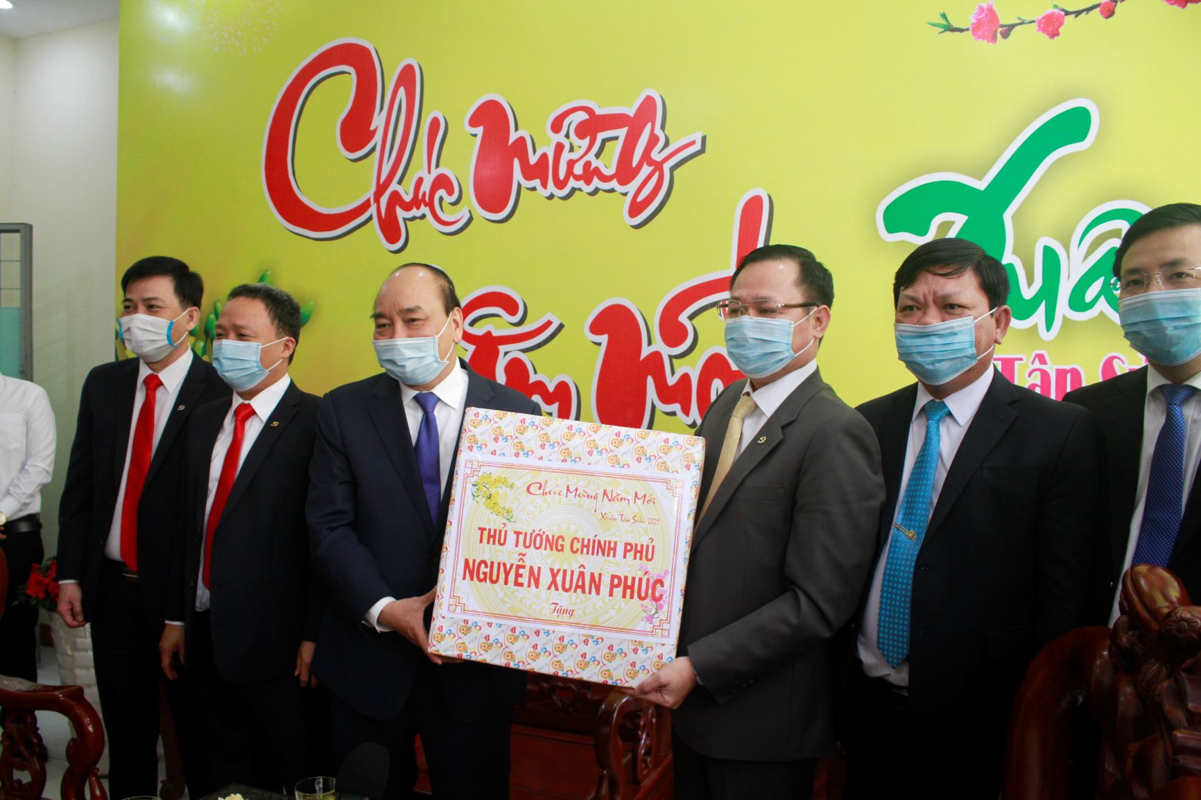 Nguyên Xuân Phuc présente ses vœux du Nouvel an lunaire aux autorités de l’arrondissement de Hai Châu. Photo : VGP |