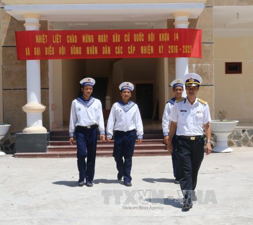 (VOVworld) - Les îles du district insulaire de Truong Sa (Khanh Hoa) s’animent à l’approche des élections législatives et locales. Banderoles et slogans sont visibles dans tous les lieux de travail, maisons culturelles et endroits publics. Les listes des candidats et les règlementations sont affichées partout. Les autorités insulaires ont pris des mesures pour que les pêcheurs, qui ne pourront pas rentrer en terre ferme le jour des élections, puissent pratiquer leur droit de vote.