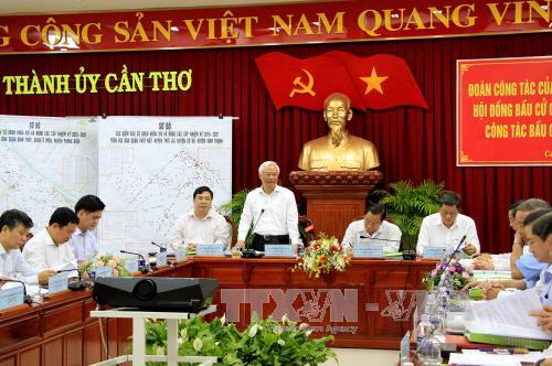 (VOVworld) - Poursuivant sa tournée dans le delta du Mékong, la délégation du comité permanent de l’Assemblée nationale et du Conseil électorale nationale, conduite par Uong Chu Luu, vice-président de l’organe législatif, s’est rendue ce mercredi à Can Tho pour superviser les préparatifs des prochaines élections législatives et locales dans cette ville. Après avoir examiné les préparatifs dans l’arrondissement de Ninh Kieu, la délégation a travaillé avec la commission électorale de la ville de Can Tho. Uong Chu Luu y a souligné l’importance des prochaines élections, qui constituaient la mission politique principale du pays en 2016. Il a demandé aux autorités de Can Tho d’attacher de l’importance à la communication sur les élections.