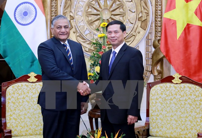 (VOVworld) - Le secrétaire d’Etat au ministère indien des Affaires étrangères Vijay Kumar Singh est en visite au Vietnam depuis le 20 avril. Ce vendredi à Hanoï, il s’est entretenu avec le vice-ministre vietnamien des Affaires étrangères Bui Thanh Son. Les deux parties ont convenu d’intensifier les échanges de délégations à tous les niveaux, officiels et populaires, et de donner un nouveau coup de pouce à la coopération économique, et commerciale, ainsi qu’à l’investissement.
