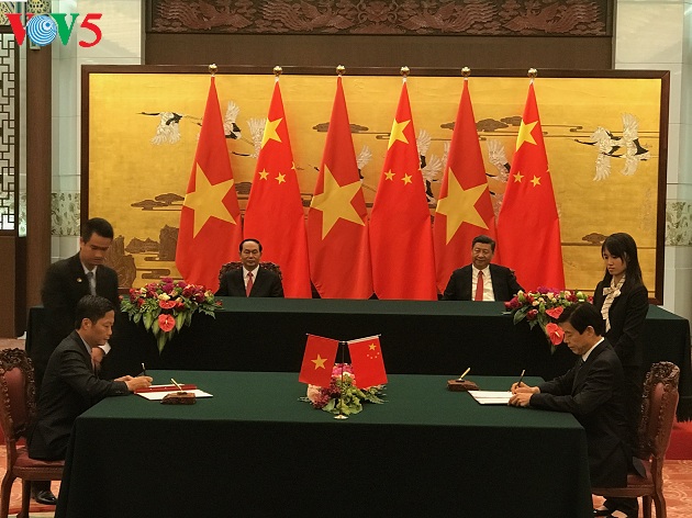 A l’issue de l’entretien, Tran Dai Quang et Xi Jinping ont assisté à la signature de plusieurs documents de coopération importants entre les deux pays.