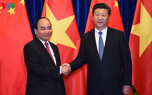 (VOVworld) - Ce mardi après-midi, le Premier ministre vietnamien Nguyên Xuân Phuc a eu une entrevue à Pékin avec le secrétaire général du Parti communiste et président chinois Xi Jinping. Le Vietnam prend en haute estime la confiance politique et s'attache à consolider et à valoriser en permanence l’amitié de longue date entre les 2 pays, a souligné Nguyên Xuân Phuc. Il a souhaité que la Chine oeuvre avec le Vietnam pour améliorer la qualité de la coopération bilatérale, gérer les contentieux maritimes, respecter les accords signés par les dirigeants des 2 pays, accélérer les négociations, observer la déclaration sur la conduite des parties en mer Orientale, parvenir au plus vite possible à un code de conduite en mer Orientale.