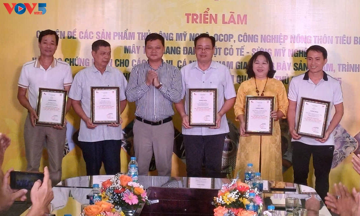 Remise de certificats de participation à l’exposition aux participants.Photo : Ngọc Anh/VOV5 |