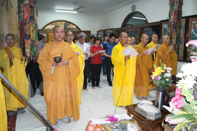 (VOVworld) - A eu lieu ce dimanche dans la pagode de Phat Tich située à Vientiane, capitale laotienne, une cérémonie de prière pour le repos de l’âme des soldats vietnamiens mort pour la patrie et notamment des 64 héros tombés en 1988 sur le récif de Gac Ma de l’archipel de Truong Sa du Vietnam. Plus de 300 dignitaires et fidèles bouddhistes vietnamiens au Laos y ont participé.