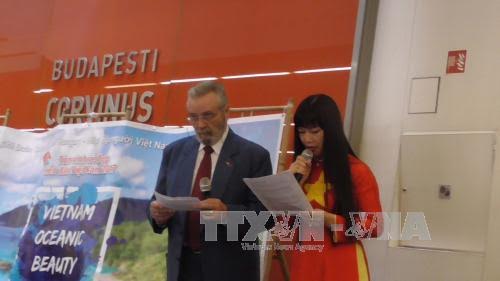 (VOVworld) - Une fête intitulée “Honorer la beauté de la mer et des îles du Vietnam” a eu lieu samedi à Budapest, en Hongrie. L’événement a réuni des centaines de participants venus de différentes associations de Vietnamiens en Hongrie, des enseignants et des étudiants vietnamiens et étrangers à l’Université Corvinus. Dans le cadre de la fête ont été exposées des centaines de photos portant sur l’histoire, le pays et les habitants du Vietnam, de mêmes que de vieilles cartes attestant la souveraineté vietnamienne sur les archipels de Hoang Sa et de Truong Sa. Il y avait également des numéros de chant et de danse, un défilé de mode et une présentation de la gastronomie vietnamienne.