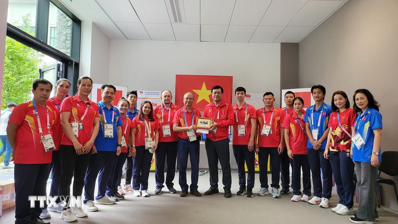 Lors de cette visite, le diplomate a souligné que l'ambassade, les organes de représentation du Vietnam en France et la communauté vietnamienne suivent de près les activités et les performances de la délégation. Il a salué l'esprit de compétition des athlètes et les résultats obtenus jusqu'à présent, tout en leur souhaitant bonne chance pour les épreuves à venir.
