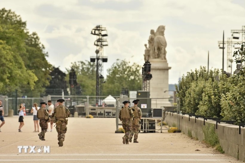 Environ 45.000 policiers et membres des forces de l'ordre seront mobilisés, en plus de 10.000 soldats et 20.000 agents de sécurité privés. La zone sécurisée s’étendra sur plus de 6 kilomètres le long de la Seine, avec une capacité d’accueil d'environ 300.000 spectateurs munis de billets, ainsi que de nombreux résidents et touristes observant depuis les bâtiments voisins. Une zone d'exclusion aérienne de 150 kilomètres autour de Paris sera instaurée une heure avant le début de la cérémonie, prévue à 19h30 heure locale.