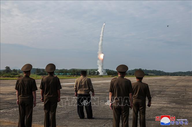 Le président nord-coréen Kim Jong-un supervise l'essai d'un nouveau missile balistique tactique Hwasongpho-11-Da-4.5, le 18 septembre 2024. Photo: Yonhap/TTXVN |