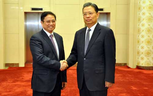 Dimanche à Pékin, Pham Minh Chinh a rencontré son homologue chinois Zhao Le Ji qui a affirmé que son pays accordait beaucoup d'importance aux relations avec le Vietnam. Les deux hommes ont décidé d'intensifier les échanges de délégations de haut rang, de consolider la confiance politique, de promouvoir les connexions stratégiques et de gérer au mieux les différends de leur pays en vue de maintenir une relation bilatérale stable et saine entre le Vietnam et la Chine. Pham Minh Chinh a proposé de multiplier les rencontres au niveau des membres du bureau politique et de sensibiliser la jeune génération à l’amitié de longue date entre les deux partis et les deux peuples.