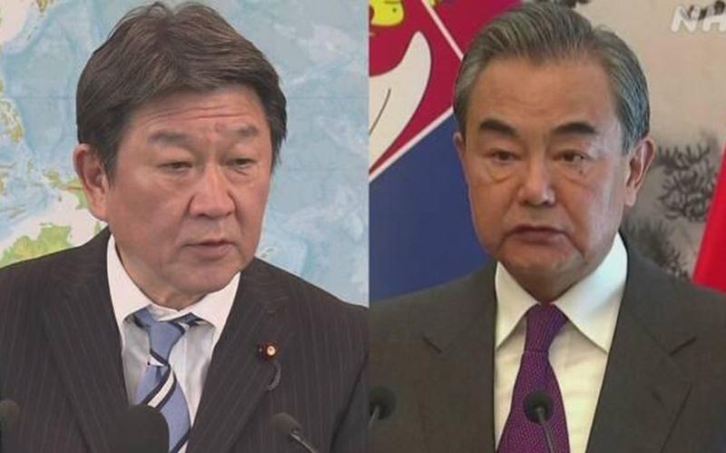 Le conseiller d'Etat chinois et ministre des Affaires étrangères, Wang Yi (droite) et son homologue japonais Toshimitsu Motegi (photo SCMP) |