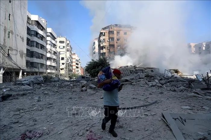 Un bâtiment détruit après une frappe aérienne israélienne à Beyrouth, au Liban. Photo: TTXVN |