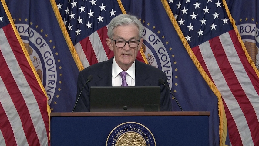 Le président de la FED Jerome Powell annonce une baisse des taux directeu de 0,5 % lors d'une conférence de press. Photo: Reuters |