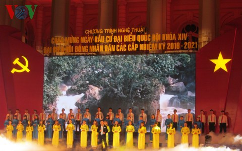 (VOVworld) - La soirée artistique « La fête du pays » a eu lieu samedi soir à la place de la Révolution d’Août, à Hanoï, en l’honneur des élections législatives et locales de 2016. Au programme : des chansons primées lors du Concours de composition sur les élections à l’Assemblée nationale et aux conseils populaires, ainsi que des morceaux exaltant le Parti communiste vietnamien et le président Ho Chi Minh.