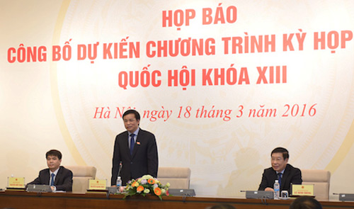 L’Assemblée nationale évaluera le développement socio-économique et la réalisation budgétaire de 2015 ; la mise en œuvre du développement socio-économique 2016-2020 et décidera du plan d’utilisation foncière 2016-2020.