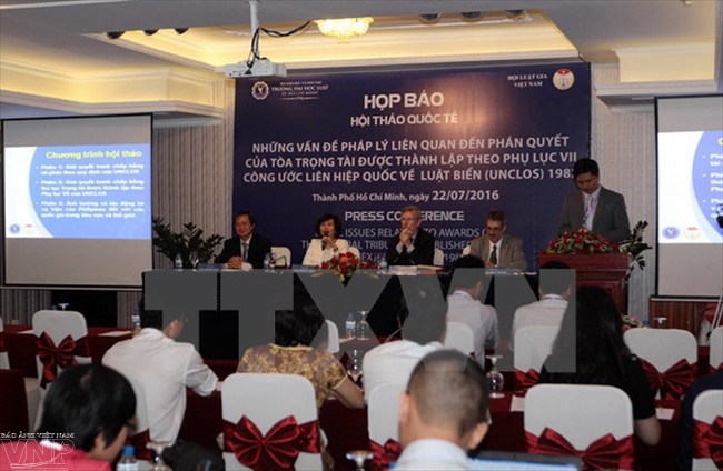 (VOVworld) - Un colloque consacré à la sentence de la Cour permanente d’arbitrage (CPA) de la Haye, concernant la procédure engagée par les Philippines contre les revendications chinoises en mer Orientale, a eu lieu ce samedi à Ho Chi Minh-ville. Ce colloque a réuni plus de 200 spécialistes du droit maritime du Vietnam et de plusieurs pays étrangers. Au menu des débats : les mesures judiciaires destinées à résoudre les litiges en mer Orientale compte tenu de la convention des Nations Unies sur le droit de la mer de 1982 et d’autres conventions internationales sur le droit maritime. Mai Hong Quy, recteur de la faculté de droit de Ho Chi Minh-ville indique :