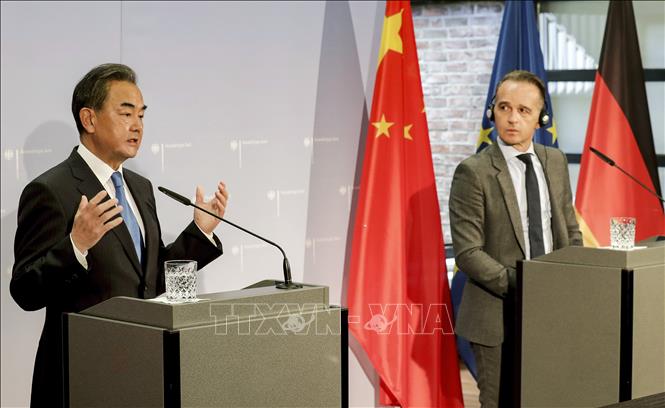 Le conseiller d'État et ministre chinois des Affaires étrangères Wang Yi (gauche) et le ministre allemand des Affaires étrangères Heiko Maas à Berlin ce 1er septembre (photo AFP/TTXVN) |