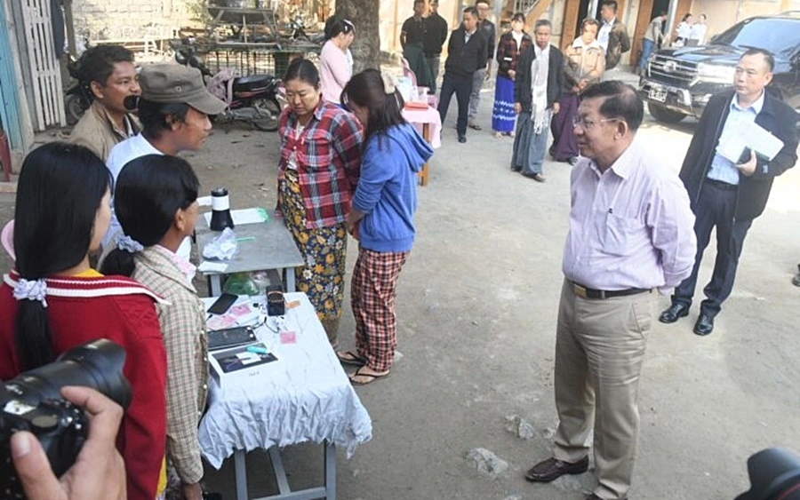 Le président du Conseil de l’administration de l’État du Myanmar, Min Aung Hlaing inspecte un bureau de vote de la région de Mandalay, le 25 janvier. Photo: Médias d’État du Myanmar |