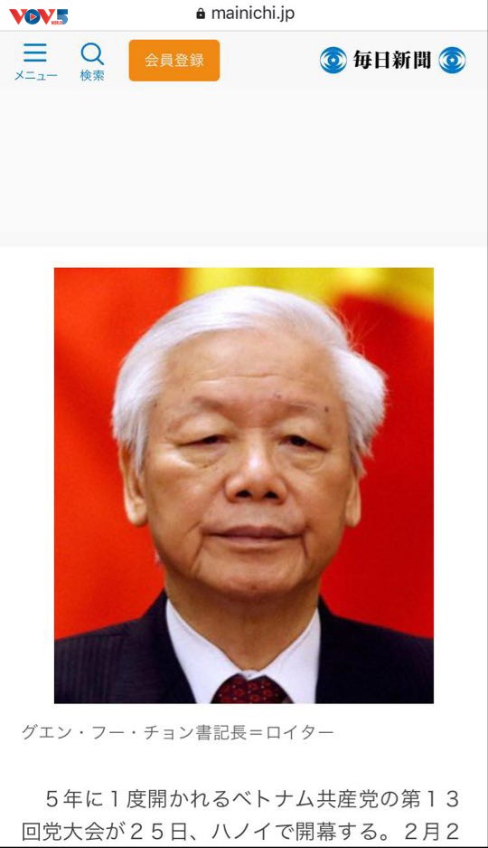 L'image du secrétaire général du Parti communiste et président vietnamien Nguyên Phu Trong sur le site web de Mainichi. Photo: VOV Japon |