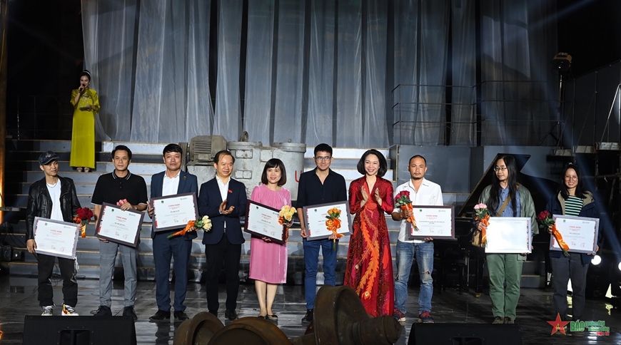 Le comité organisateur honore les collectifs et les individus ayant des contributions au succès du festival. Photo: qdnd.vn |