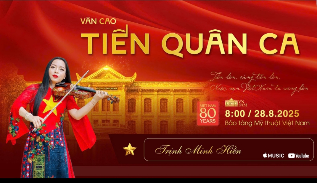 Cette collaboration avec la violoniste Trinh Minh Hiên allie l’hymne national vietnamien aux chefs-d’œuvre du patrimoine artistique vietnamien. Le clip sera diffusé le 28 août à 8 heures sur les plateformes numériques du musée.
