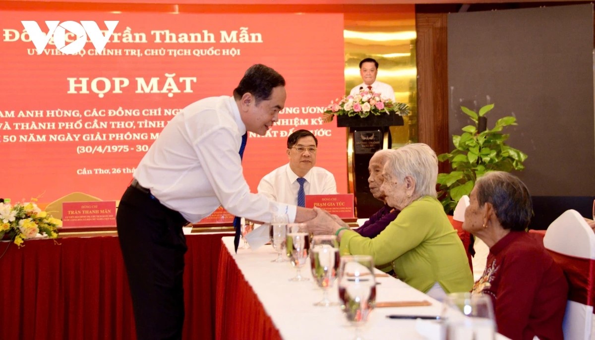 Le président de l'Assemblée nationale, Trân Thanh Mân, rencontre des Mères vietnamiennes héroïques à Cân Tho. Photo: Lê Tuyêt/VOV |