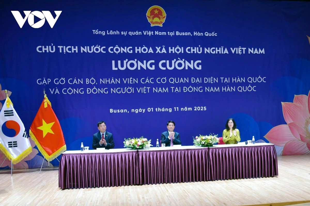 Toujours à Busan, le président Luong Cuong a rencontré le personnel des missions diplomatiques vietnamiennes en République de Corée ainsi que les représentants de la communauté vietnamienne.