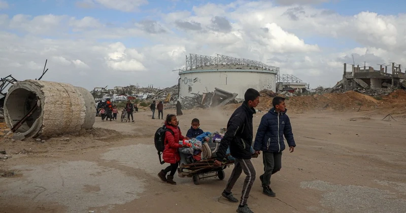 Des habitants évacués en raison du conflit à Beit Lahia, dans la bande de Gaza, le 20 mars. Photo: THX/TTXVN |