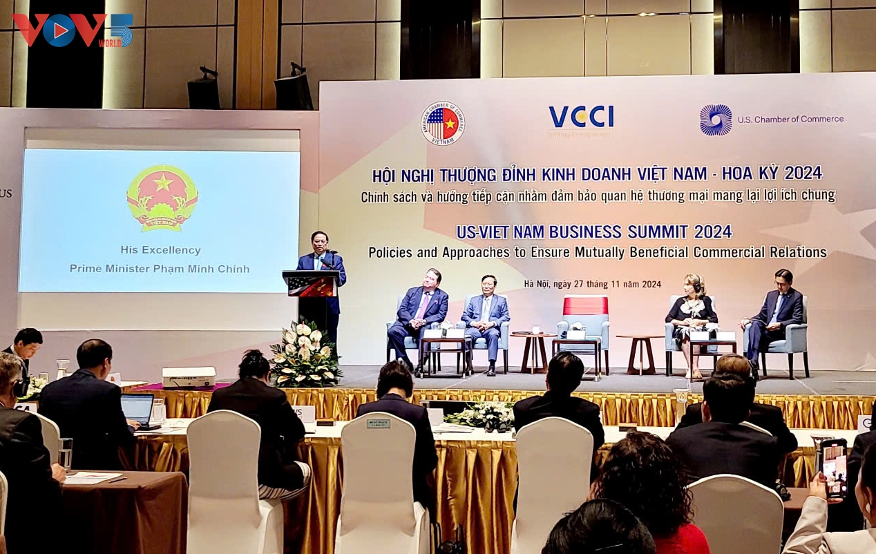 Sommet des affaires Vietnam-États-Unis, placé sous le thème «Politiques et approches pour garantir des relations commerciales bénéfiques». Photo: VOV5 |