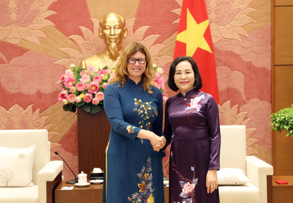 Silvia Danailov, représentante de l’UNICEF au Vietnam et la vice-présidente Nguyên Thi Thanh. Photo: quochoi.vn |