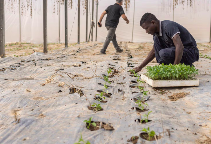 Un ouvrier travaille dans une serre de la ferme Sharsheret, située près de Gaza, dans le sud d'Israël. Photo: El País |