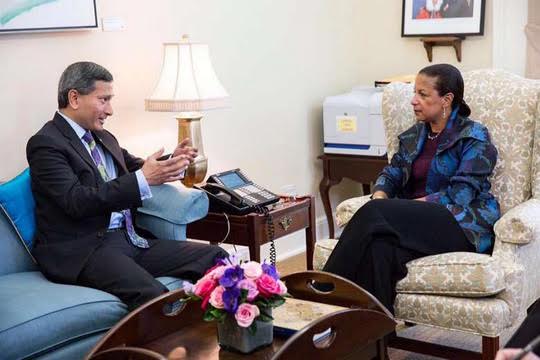 (VOVworld) - La conseillère à la sécurité nationale des États-Unis, Susan Rice, a reçu ce jeudi le ministre singapourien des Affaires étrangères Vivian Balakrisnan. A cette occasion, les deux parties ont discuté de la sécurité maritime en mer Orientale, de la menace terroriste et du renforcement de la coopération commerciale. Susan Rice a réaffirmé l’engagement des Etats-Unis à intensifier leurs relations avec leurs partenaires importants de la région Asie-pacifique dont Singapour et l’ASEAN. Les deux pays ont débattu aussi des intérêts économiques et stratégiques de l’accord de partenariat trans-pacifique TPP.