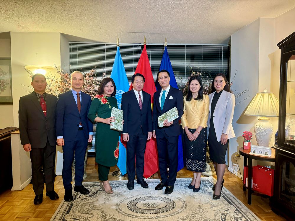 L'ambassadeur Dang Hoang Giang et le chef de la Mission laotienne auprès de l'ONU, Anouparb Vongnorkeo. Photo: VOV |