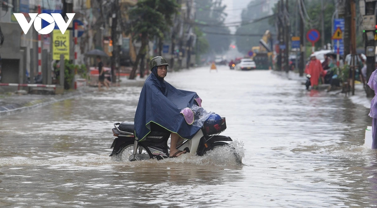 Sous l'effet du typhon Matmo, Hanoi et plusieurs provinces du Nord sont inondées par endroits. Photo : VOV |
