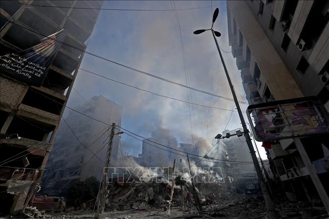 Bâtiments détruits à Beyrouth après une frappe aérienne israélienne, le 3 octobre 2024. Photo: THX/TTXVN |