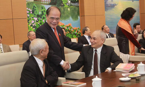 (VOVworld) - A l’occasion du 70ème anniversaire des premières législatives au Vietnam le 6 janvier 1946, le comité permanent de la 13ème législature a organisé ce mardi matin à Hanoï une rencontre avec des anciens députés. Le président de l’Assemblée nationale Nguyên Sinh Hùng et ses prédécesseurs Nông Duc Manh et Nguyên Van An étaient présents.