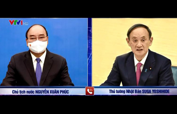 Le président de la République Nguyên Xuân Phuc (gauche) et le Premier ministre japonais Suga Yoshihide. Photo: VTV |