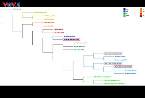 Arbre phylogénétique des souches du SARS-CoV-2 collectées au Vietnam jusqu'au 1er avril 2021. Photo: VOV |