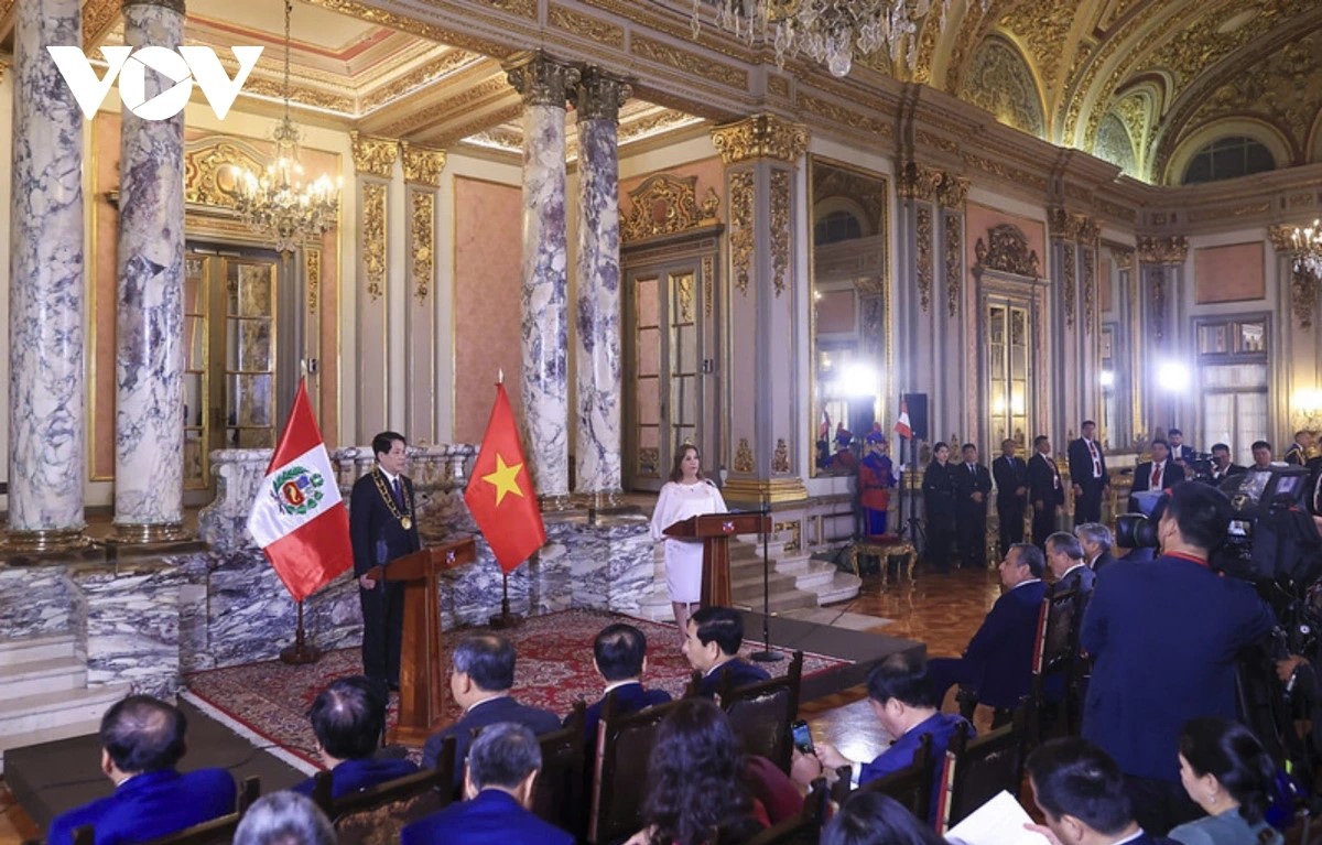 Les présidents péruvienne et vietnamien lors d’une conférence de presse. Photo: VOV |
