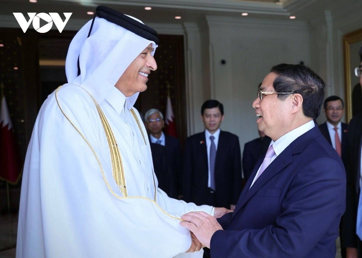 Pham Minh Chinh (gauche) et Cheikh Tamim Bin Hamad Al Thani. Photo: VOV |