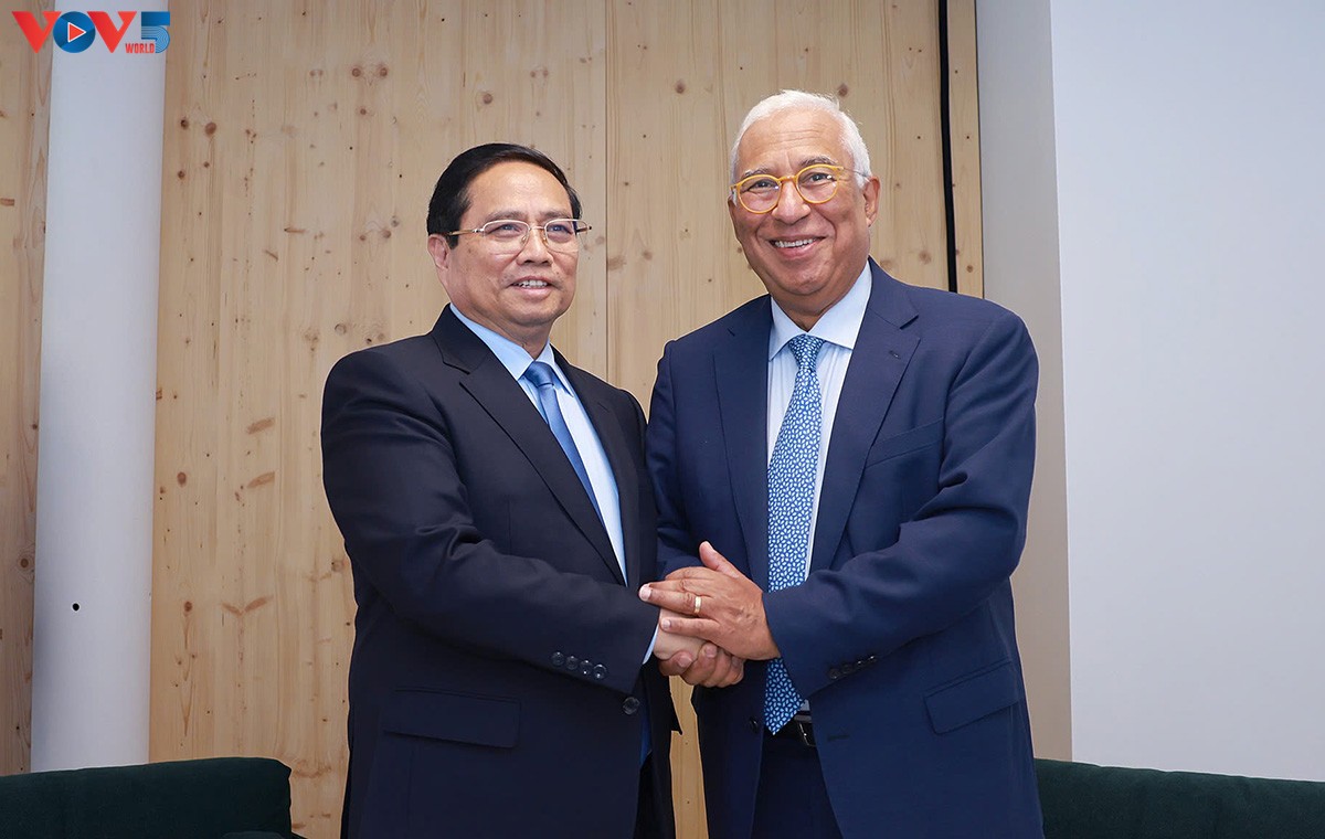 Le Premier ministre Pham Minh Chinh et Antonio Costa, le président du Conseil européen. Photo: Lại Hoa/VOV |