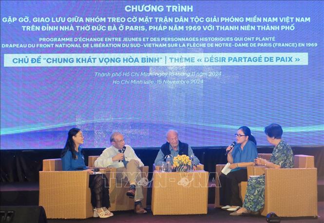 Rencontre avec les personnes ayant arboré le drapeau du Front de libération nationale du Sud-Vietnam sur la cathédrale Notre-Dame de Paris en 1969. Photo: TTXVN |